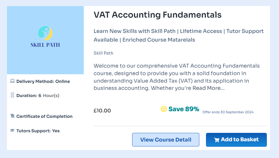 Our VAT Accounting Fundamentals course opens career paths as a VAT Specialist, Financial Analyst, Accountant, or Small Business Advisor. With increasing demand for VAT expertise, it’s a smart investment in your career.