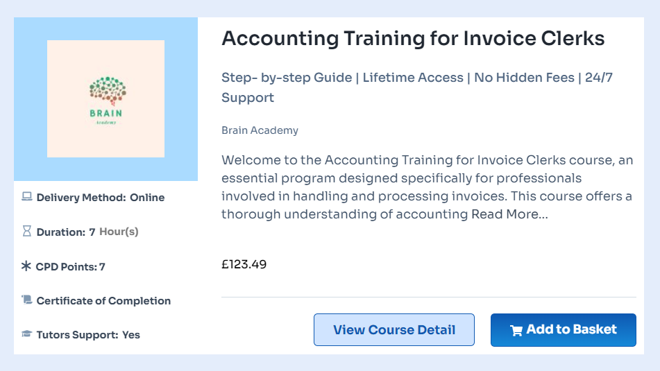 Brain Academy’s Accounting Training for Invoice Clerks course offers to enhance your career, whether you’re starting anew or deepening your expertise. Our industry-designed curriculum provides practical skills and insights to help you achieve your professional goals.