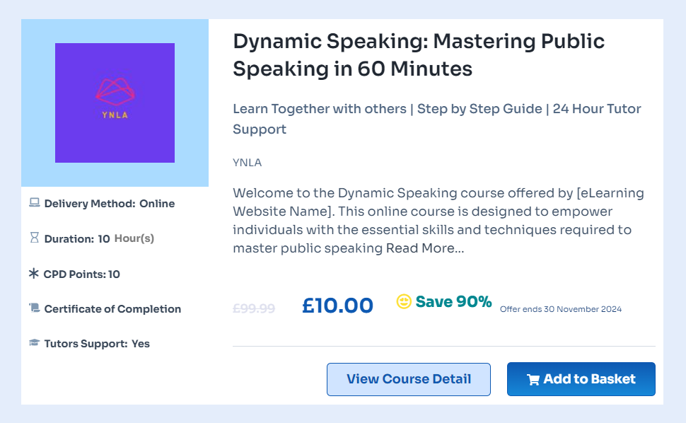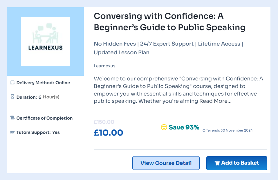 Enhance your confidence and persuasive speaking skills with our top 10 online public speaking courses in the UK. Perfect for beginners and those looking to refine their expertise, these courses provide expert instruction, practical tips, and engaging learning experiences.