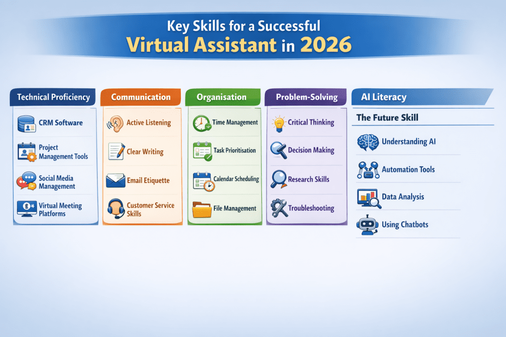 To excel as a Virtual Assistant, a blend of strong organisational, communication, technical, and interpersonal skills is crucial. While specific client needs vary, a core set of competencies forms the bedrock of a successful VA career in 2026. These skills not only enable efficient task completion but also build trust and long-term client relationships.